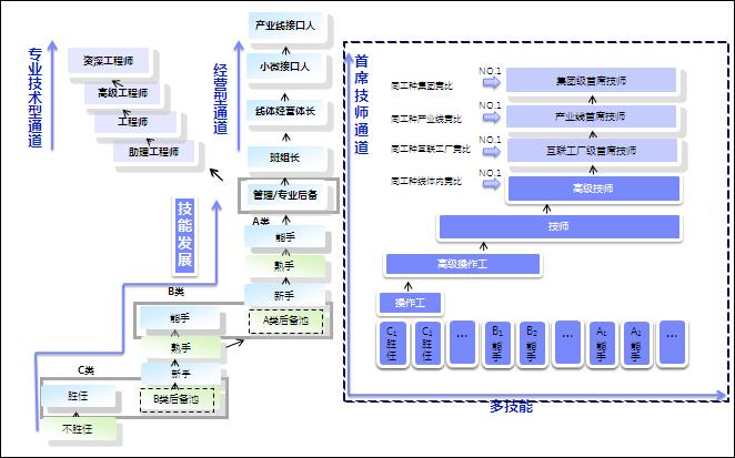 注:大专生经生产现场历练6—12个月,可选择适合自己的通道实现其职业成长。