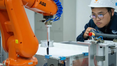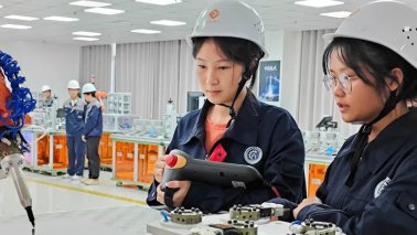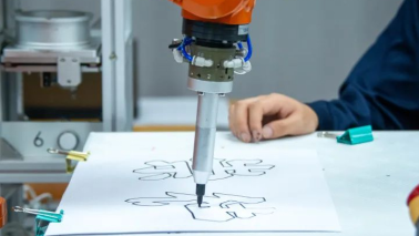随着主持人宣布开赛指令,10位师生选手在观众的掌声与和喝彩中正式开启“智慧书写,老师您好!”比赛。选手们第一时间开启设备安全检查、贺卡编程设计、工业机器人操控等操作,一幅幅校训字样、校徽图案、教师节祝福语等精心设计的贺卡在工业机器人的精准控制下跃然纸上。对于10名师生选手而言,本次比赛比的不仅是速度,也是技艺,更是精益求精的精神。