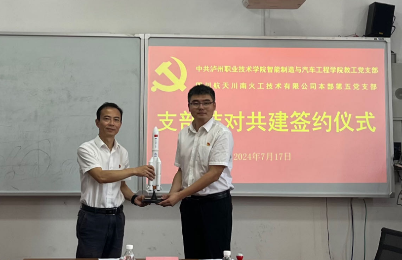 在双方党员代表的见证下,教工支部书记李刚与四川航天川南火工技术有限公司本部第五党支部书记王旭东共同签署了结对共建协议,并相互授牌。这标志着双方将在组织关系互联、组织建设互促、党员干部互动、党建载体互用、产教融合共行、数字基地共建、服务发展互动等多个领域展开深入合作。双方将以党建为引领,强化思想交流,促进文化融合;以项目为纽带,推动产学研深度融合,加速科研成果的转化应用;以人才为核心,搭建实践创新平台,全面提升员工的专业技能和创新能力。