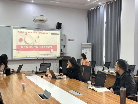 张丹博士以《教学成果奖申报与撰写的思考》为主题,首先对前期国家教学成果奖的获奖情况进行分析,然后分析展示了教学成果奖的几个要素,并对教学成果奖的申报进行系统培训。最后,张丹博士结合公司工业机器人技术专业的现有成果,与公司领导班子进行交流,对今后专业建设提出了建议,为后续工作指明了方向。