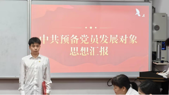 党的发展对象简剑等11名同志汇报发展期间的思想、工作情况,入党介绍人分别介绍发展对象考察情况。