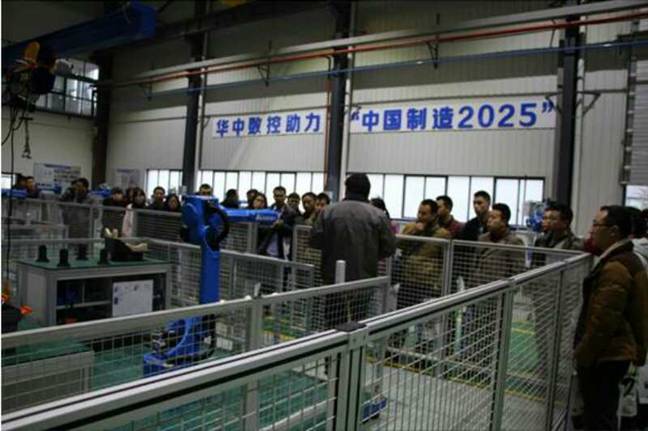 重庆华中数控技术有限公司主要经营智能数控设备、机器人的研发、生产、销售等,是国家数控系统的龙头企业。培训伊始,技术服务副总经理田进宏分别从公司智能制造技术优势、工业机器人人才市场形势及需求、智能制造人才培养等方面对公司的发展状况进行了详细的介绍。接下来几天的学习,培训班采用集中培训方式,以理论讲授与实操训练相结合。理论学习主要为工业机器人原理、工业机器人示教编程、工业机器人应用等;实践操作部分,学员深入车间,华中数控专家、工程师指导学员学习工业机器人应用示教编程、工业机器人机械系统拆装、工业机器人电气系统拆装等。