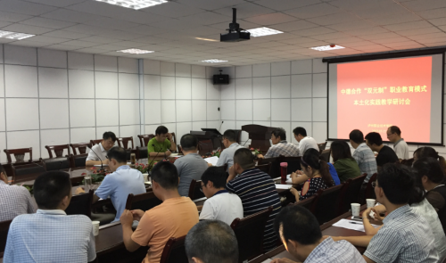 7月27日,公司举办2017年度中德合作“双元制”职业教育模式本土化实践教学研讨会,围绕中德合作“双元制”职业教育模式本土化实践展开汇报和讨论,分享专业建设和课程建设的经验和成果。经理贺元成,主管教学副经理彭涛、教务处、人事处、督导中心、对外合作办公室等部门领导和老师、以及机械系全体教师参加会议。机械工程系主任张安民主持研讨会。