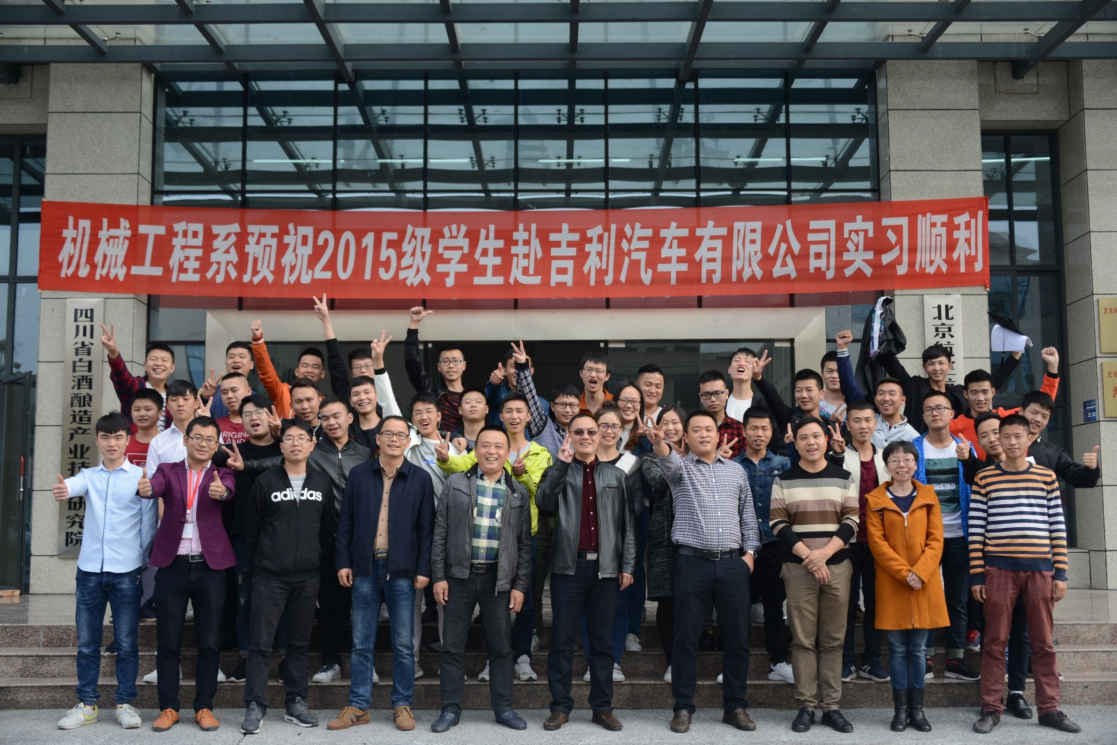 会后,全体赴吉利汽车有限公司实习的34位同学与老师们合影。本次实习动员会增加了同学们就业积极性,也充分体现了学院领导对同学们的实习、就业的关心,希望本次赴吉利汽车有限公司实习的学子们都能学有所获,取得成功。(文/员工记者尹明熙 图/员工记者赵磊山)
