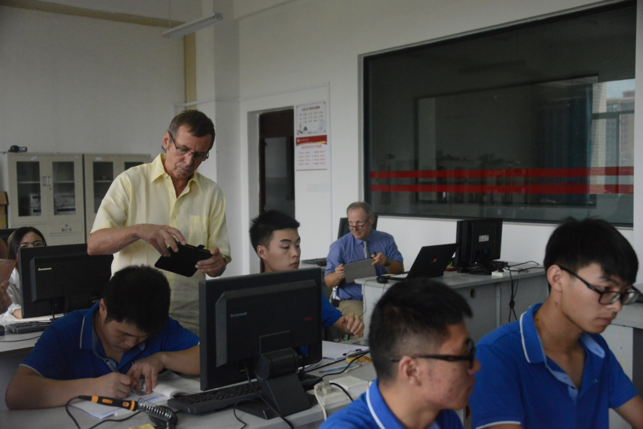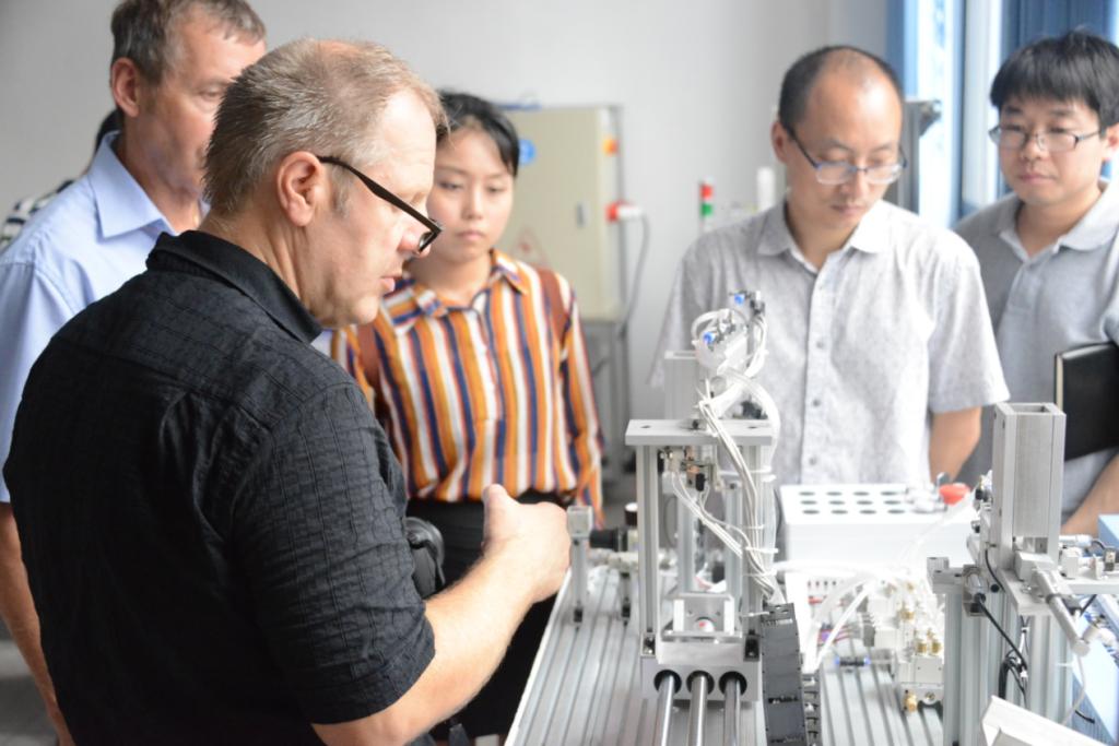 2018年7月8日至7月12日,德国德累斯顿工业大学职业教育与继续教育公司委派德国机电一体化师专业负责人Erich Christoph Lauterbach先生和德国机电一体化师专家Andre Larisch先生莅临公司开展2018年中德合作项目教学质量检查工作。德国专家全面检查了公司中德合作项目专业的各教学场所,仔细研究了公司中德合作专业教学计划及课程大纲,旁听中德合作班的授课过程,并与公司专业教师团队一起进行教学计划及教学问题的分析和诊断。