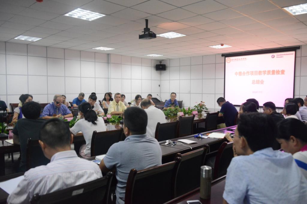 2018年7月12日下午,2018年中德合作教学质量检查工作总结会在公司综合楼415会议室举行,公司经理贺元成教授、彭涛副经理、对外交流处银盈主任,教务处何兵副处长,督导中心汪玲主任等部门领导,德国机电一体化师专业负责人Erich Christoph Lauterbach先生和Andre Larisch先生及公司中德合作团队教师等出席了本次会议。会议由机械系主任张安民教授主持。