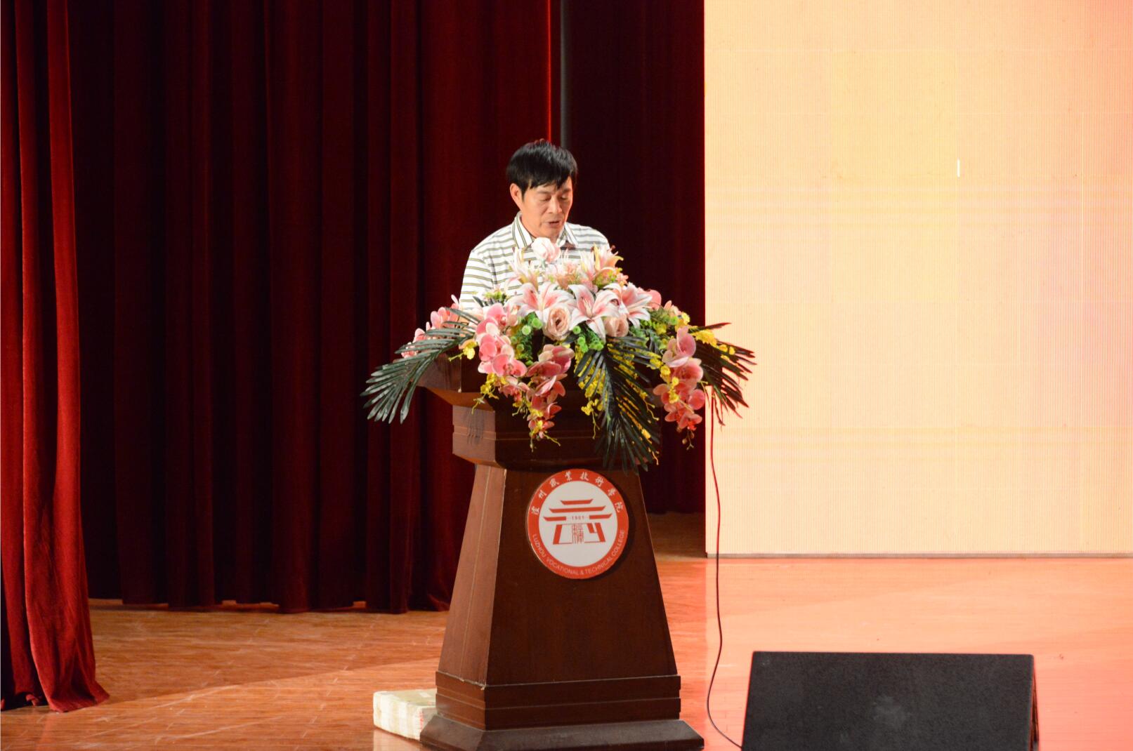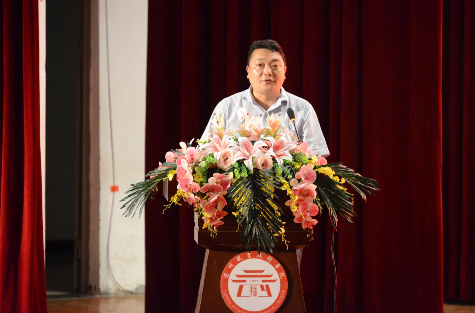 唐敬友教授作为机械工程公司教师代表发言,他对经过高中或职高的三年拼搏而跨入大公司园的新生表示祝贺,希望同学们能尽快融入泸职院这个大家庭,树立远大的理想,成为新时代中国特色社会主义的建设者。他表示老师们也会竭尽全力帮助同学们学好专业知识,解决学习生活中的困难。
