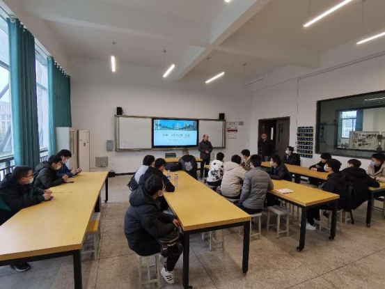 2022年2月20日下午1时,威廉希尔体育副经理李刚、机电教研室主任薛邵文在威廉希尔体育6203对机电专业高职扩招新生进行了入学教育。