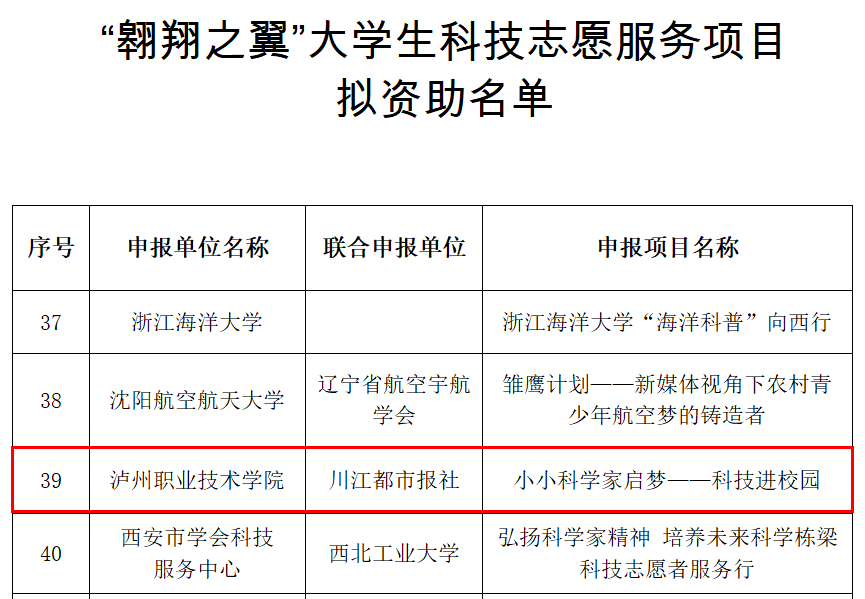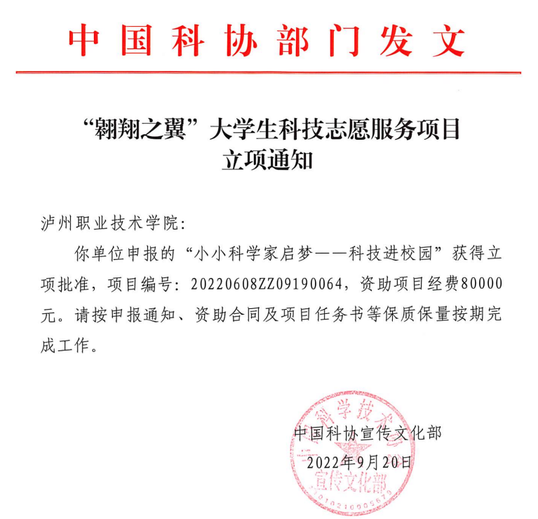 近日,中国科学技术协会发布了“翱翔之翼”老员工科技志愿服务项目立项通知,由威廉希尔体育李刚副经理牵头申报的“小小科学家启梦——科技进校园”项目获批立项,拟资助金额8万元,四川省仅3所高校获得资助。