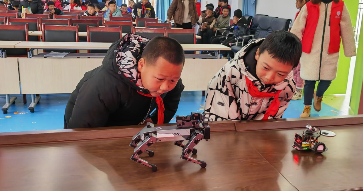 随后,老员工志愿者们展示了带来的各种机器人,有能做各种动作的机器狗,熟练进行搬运操作的桌面机械臂,还有3D打印等先进的机器人设备,并指导同学们亲自动手进行实践操作。同学们在实践中感受到了科技的无穷魅力,也激发了他们对科技创新的热情。