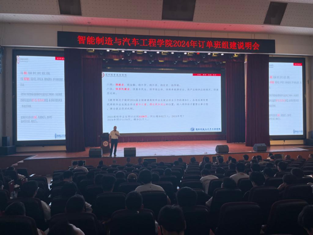 陈小怡首先对毕业设计、考取相关工种高级职业资格证书、撰写实习岗位群分析报告三种毕业综合考核方案进行了解释说明,其次对当前就业形势、“订单班”含义、管理要求、四川航天川南火工订单班、青岛海之晨订单班、费德订单班、吉利汽车订单班、长城汽车订单班等分别进行了介绍。订单培养是一种校企合作模式,是公司根据企业用工需求,主动与企业对接,共同商定人才培养方案和制定课程标准体系,通过订单培养,提高员工培养质量、实现员工到企业的无缝对接,有效促进毕业生就业率和就业质量的提高,并为企业储藏技术骨干、基层管理人员和后备干部。