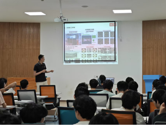 宣讲会上,企业职业教育市场经理谭曌围绕企业人才战略、核心业务布局、产业落地案例及产教融合实践展开分享。他详细介绍了公司在机器视觉领域的技术优势与行业地位,并重点解读“海之晨订单班”的培养模式:订单班将采用“校企双导师+岗位实战化”培养机制,为员工定制涵盖工业机器人应用、智能产线设计、机器视觉、图像技术等课程体系,同步配套企业真实项目实训。谭曌强调,入选订单班的员工将获得企业实习岗位,表现优异的员工可以进入“海之晨人才储备库”。