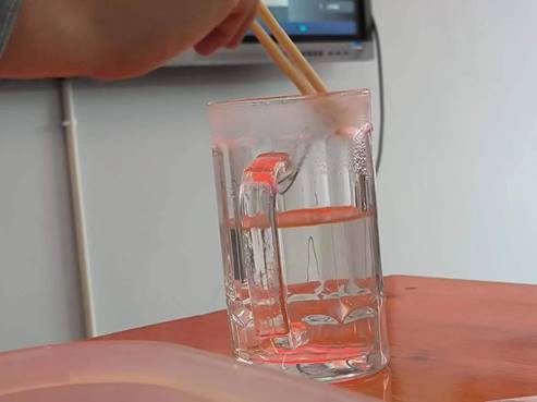 在江门中心校的智慧教室,志愿者周云杰组织同学们进行形状记忆合金实验,将形状记忆合金制成的回形针和普通材料制成的回形针变形,分别投入热水和冷水中,通过观察对比发现形状记忆合金制成的回形针能在高温下迅速恢复原来的形状。亲自动手操作,仔细观察分析,激发了同学们对这种具有特殊功能的材料应用的畅想,想把形状记忆合金用于玩具制作、军事、生活……同学们丰富的想象力,也让志愿者们感叹。